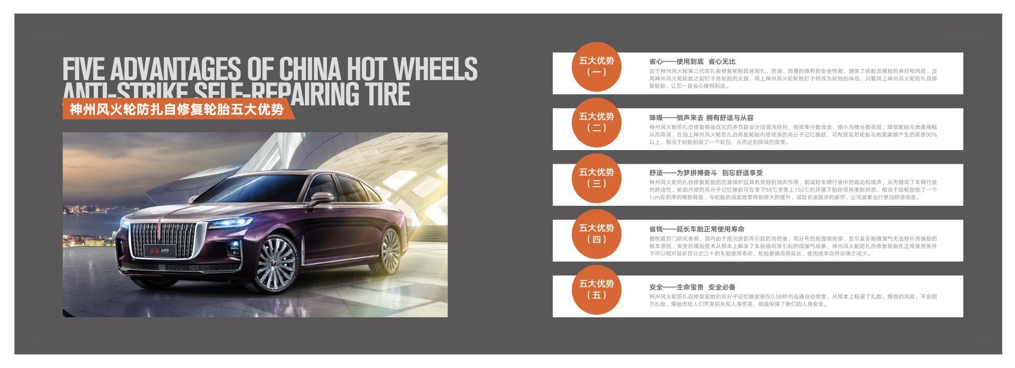 神州風(fēng)火輪智能防扎自修復(fù)輪胎介紹 隨著人們生活水平的不斷提高,汽車已經(jīng)進(jìn)入尋常百姓家庭成為各個家庭生活當(dāng)中必不可少的代步工具。在大家享受著汽車帶給我們出行便利的同時,也往往因為我們對一些部件的忽視導(dǎo)致一些煩惱和意外的發(fā)生。輪胎作為汽車使用過程中不可或缺的重要組成部分,不僅承載著汽車的全部重量,同時也是駕駛舒適性和行駛安全性的基礎(chǔ)保障。輪胎安全是汽車行駛過程中的重中之重,行業(yè)中流傳著這樣一句話高速爆胎≈生命報廢,所以說高速爆胎是危害駕乘安全的最大殺手。但大多數(shù)人對于輪胎的認(rèn)知度卻知之甚少,從而使扎胎爆胎以及由此引發(fā)的意外不斷的在我們身邊上演。據(jù)權(quán)威部門統(tǒng)計顯示,我國每年在高速公路上發(fā)生的交通事故多達(dá)30多萬起。在這30多萬起的交通事故中,其中76%以上與輪胎高速爆胎有關(guān),也就是說100起交通事故中就有76起和輪胎有關(guān)系,所以說輪胎安全不容小覷,輪胎安全升級勢在必行。